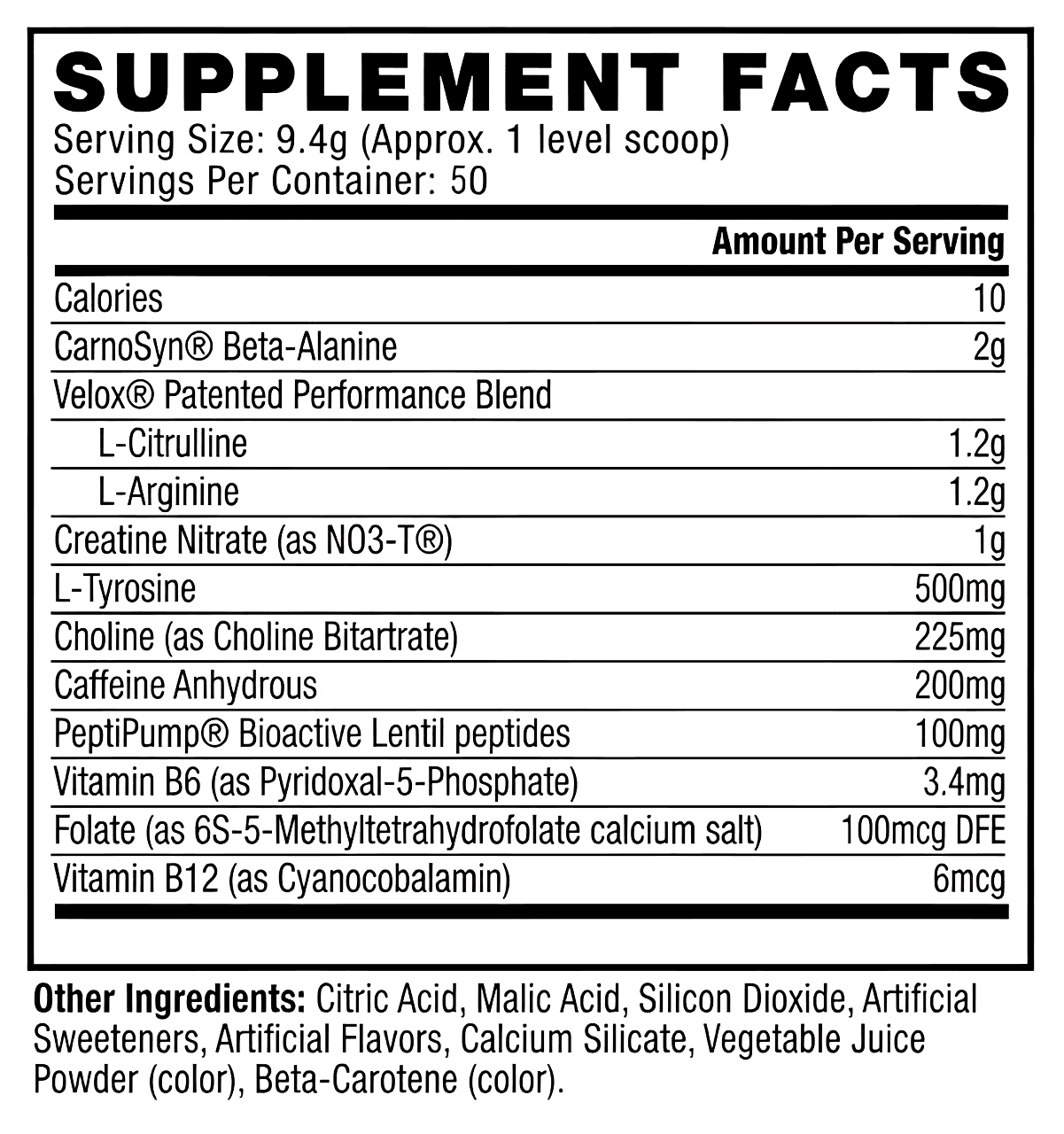 - 1000 mg de nitrato de creatina para potenciar tu fuerza explosiva.